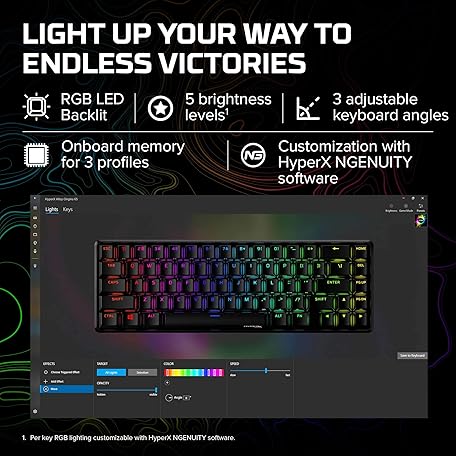Thông tin sản phẩm HYPERX 4P5D6AA Alloy Origins 65-Mechanical Gaming Keyboard-Ultra Compact 65% Form Factor – Red Switch (Linear)-Double shot PBT keycaps-RGB LED Backlit - Side Printed Secondary Functions,Black