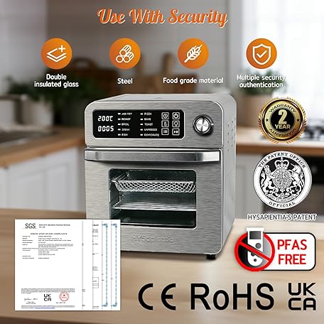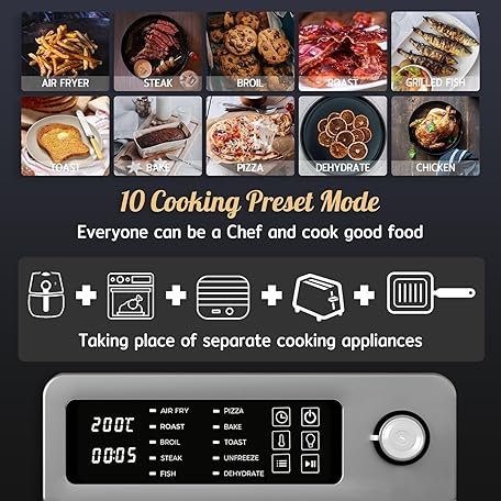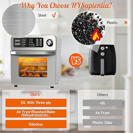 Thông tin sản phẩm HYSapientia 15L Large Air Fryer Oven For Family Digital Knob 1700W 10 in 1 Airfryer Toaster Air Convection Mini Oven electric and grill,Fast Cooking,Cookbook