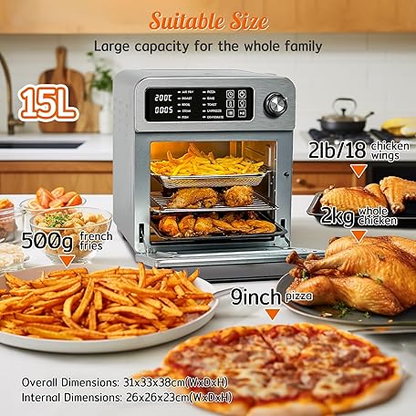 Sản phẩm HYSapientia 15L Large Air Fryer Oven For Family Digital Knob 1700W 10 in 1 Airfryer Toaster Air Convection Mini Oven electric and grill,Fast Cooking,Cookbook đang được bán với giá ưu đãi là $162.5953 tại nước Anh.