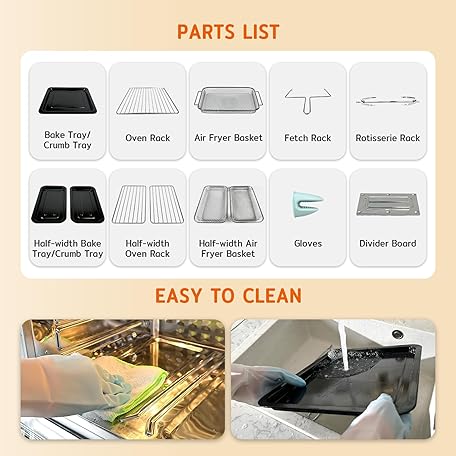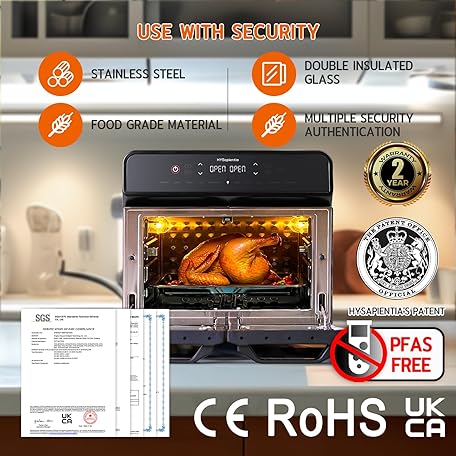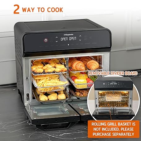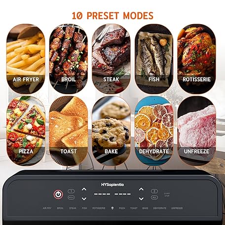 Thông tin sản phẩm HYSapientia 22L Dual Zone Air Fryer Oven With Rotisserie,Large Double Air fryers Mini Ovens Digital 2400W 10 in 1 Airfryer Countertop Convection Oven electric and grill,Stainless Steel,13 Accessories