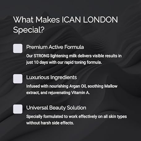 Thương hiệu ICAN LONDON là cái tên nổi tiếng được rất nhiều khách hàng trên thế giới chọn lựa. Với kiểu dáng đẹp mắt, sang trọng, sản phẩm ican London Fast Active Strong Lightening Body Milk 500ml là sự lựa chọn hoàn hảo nếu bạn đang tìm mua một món cho riêng mình.