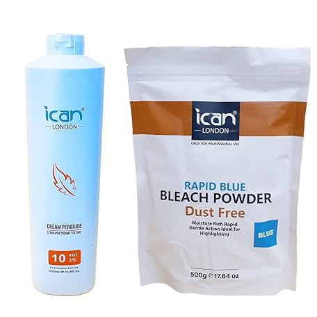 Sản phẩm ICAN LONDON PROFESSIONAL CREAM PEROXIDE 10 VOL 3% 1L + RAPID BLUE POWDER BLEACH RESEALBLE BAG 500 G COMBO SET đang được bán với giá ưu đãi là $19.6745 tại nước Anh.