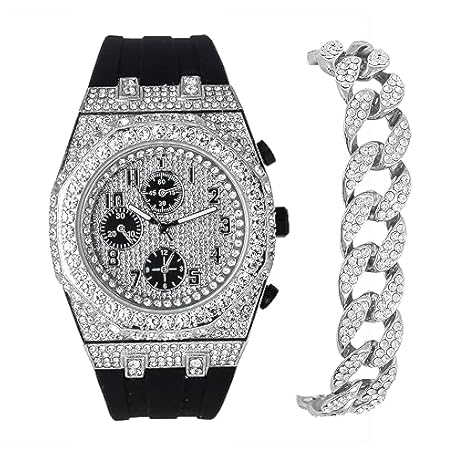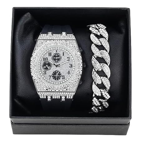 Sản phẩm ICE STAR Men's 43mm Luxury Iced Diamond Octagon Watch & Bracelet Set - Silicone Band đang được bán với giá ưu đãi là $51.993 tại nước Anh.