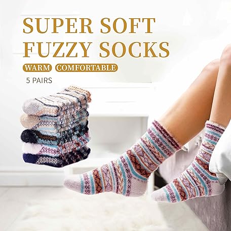 Sản phẩm ICEIVY Socks Women, Soft Knit Wool Winter Thick Warm Cabin Fuzzy Crew Women Socks 5 Pack đang được bán với giá ưu đãi là $43.1967 tại nước Anh.