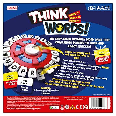 Sản phẩm IDEAL Think Words | The Quick Thinking Letter Pressing Game | For Ages 8+ | For 2-8 Players | Easy to Play | Answer in 10 Seconds | Bring Friends & Family Together | Gift Idea For Christmas & Birthday đang được bán với giá ưu đãi là $24.2525 tại nước Anh.