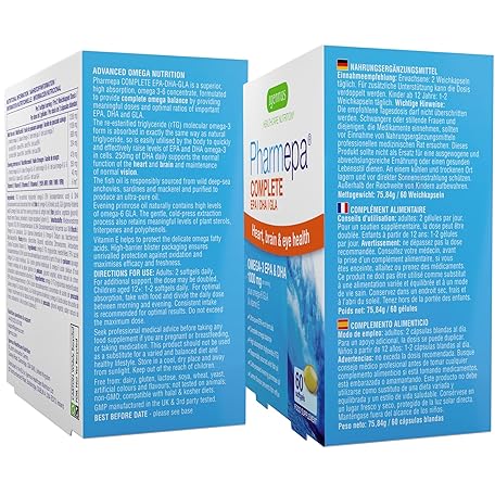 Thông tin sản phẩm Igennus Pharmepa Complete EPA DHA rTG Omega 3 Fatty Acids 1000mg, IFOS Certified, Fish Oil Plus Omega 6 GLA Evening Primrose Oil, High Potency, Lemon Flavour, 60 Softgels