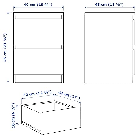 IKEA MALM Bedroom Furniture, Set of 3, 180x200 cm, White