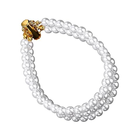 Illkjasfc Shimmering Three Strands Rhinestones Embellished Simulated Pearls Chain for Women Sensitive Skin Friendly Wristchain Elegant Imitation Pearls Wristband for Women