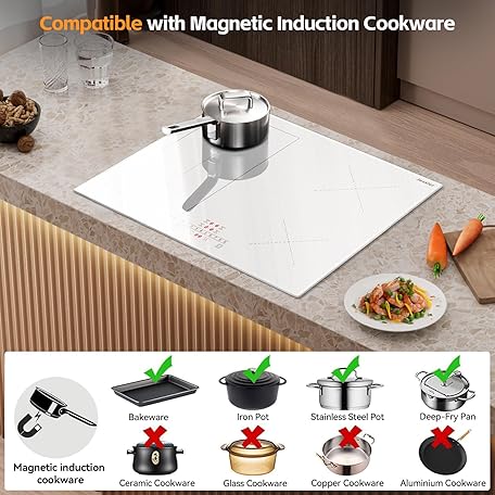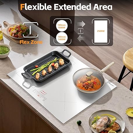 Thông tin sản phẩm Induction Hob 4 Burners, 2800W Plug in Electric Hobs with Flexible Zone for BBQ, 60cm Built-in Induction Cooker with 9 Power Levels Setting, Pause Function, Timer, Child-safety Lock, White