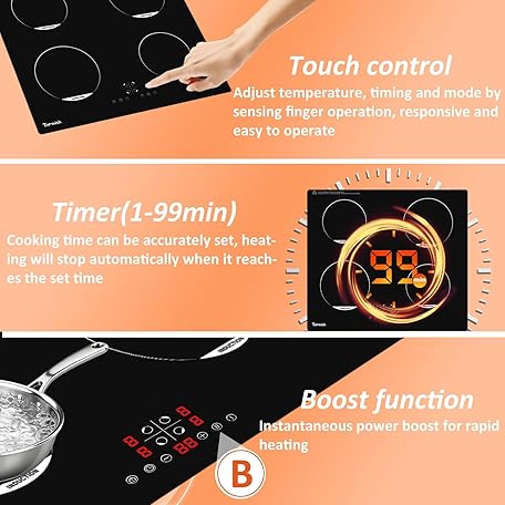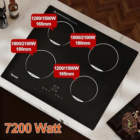 Thông tin sản phẩm Induction Hob, 4 ring induction hob, plug in hob,induction cooker 60cm with Child Lock, Boost Function, Touch Control, Residual Heat Indicator, Power Cord, 7200W, Topwish
