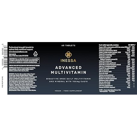 Thông tin sản phẩm Inessa Multivitamin with CoQ10 100mg, Vitamin D3 2000 IU, K2 100mcg, B Complex, Vitamins A 800mcg, Folic Acid as 5-MTHF 400mcg, Zinc 20mg and Lutein
