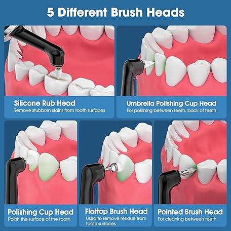 Thông tin sản phẩm InFanso Tooth Polisher Plaque Remover for Teeth, Teeth Whitening Kit with 5 Brush Heads & 5 Smart Modes to Effectively Remove Stains and Teeth Yellowing, Rechargeable, Waterproof with LED Light
