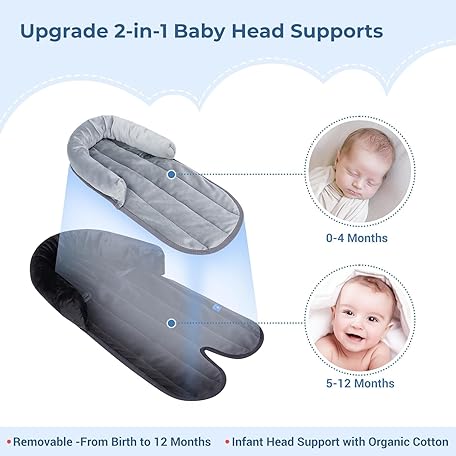 Thông tin sản phẩm INFANZIA New 2-in-1 Head & Body Supports for Baby Newborn Infants - Extra Soft Car Seat Insert, Cushion Pads for Baby Bouncer, Strollers, Swing, 20x11.8 in, Black