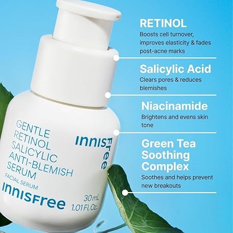 Thông tin sản phẩm INNISFREE Gentle Retinol Salicylic Anti-Blemish Serum, Brightening Korean Serum, Reducing blemishes & Fading post-acne marks, for Sensitive & Acne-Prone Skin, 30ml