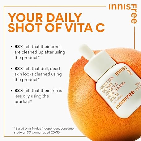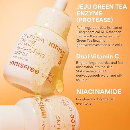 Thông tin sản phẩm innisfree Green Tea Enzyme Vitamin C Brightening Serum, Hydrating and Soothing Korean Facial Serum for uneven skin with dark spots, for dull and Glowing Skin, 30ml