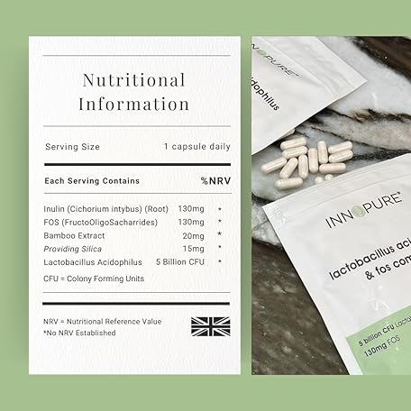 Thông tin sản phẩm INNOPURE Acidophilus Probiotic & Prebiotic Supplements 120 Capsules (Pure-Fill) No Fillers or Binders - Lactobacillus Acidophilus Complex for Gut & Digestive Health, 5 Billion CFU - UK Made