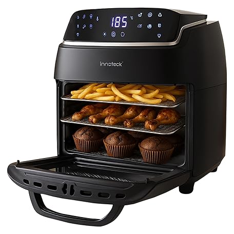 Sản phẩm Innoteck Kitchen 12L Digital Air Fryer Oven with Rotisserie 1800W Large Air Fryer with Touch Panel & 8 Cooking Presets, Shelves, Basket, Racks & Drip Tray Black & Silver Finish đang được bán với giá ưu đãi là $106.3404 tại nước Anh.