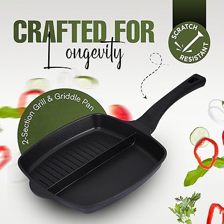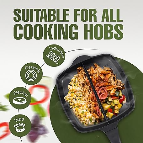 Thông tin sản phẩm Innovacook 2-Section Grill - Griddle Pan 28cm, Long Lasting Pan, Innovative Cookware, Double Layer Coating Pan, Suitable for All Cooking hobs, Black