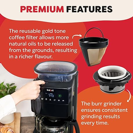 Sản phẩm Instant Grind and Brew Bean to Cup Coffee Maker, 24 Hour Programmable Filter Coffee Machine, Reusable Filter, Glass Carafe, Digital Display - 4-10 cup Customisable Brewing & Automatic Bean Grinder đang được bán với giá ưu đãi là $114.8315 tại nước Anh.
