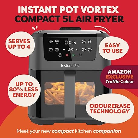 Sản phẩm Instant Pot - Vortex Compact Truffle Grey Air Fryer - 5L Basket, Family Size, 4 in 1 - Air Fry, Food Dehydrate, Bake, Reheat, Non-Stick, Easy Clean, Dishwasher Safe, Electric đang được bán với giá ưu đãi là $147.2808 tại nước Anh.