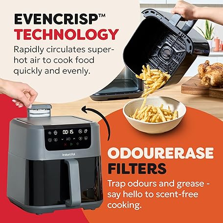 Thông tin sản phẩm Instant Pot - Vortex Compact Truffle Grey Air Fryer - 5L Basket, Family Size, 4 in 1 - Air Fry, Food Dehydrate, Bake, Reheat, Non-Stick, Easy Clean, Dishwasher Safe, Electric