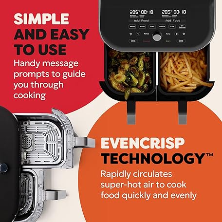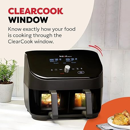 Thông tin sản phẩm Instant Pot - Vortex Plus Dual Black Air Fryer - Large 7.6L, Family Size - Twin, Double 3.7L Baskets, Clear Window, Food Dehydrator, Grill, Bake, Roast, Reheat, Non-Stick, Easy Clean, Dishwasher Safe