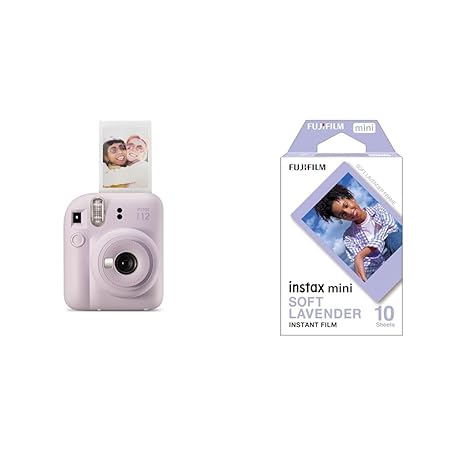instax mini 12 camera, LILAC PURPLE & instant mini film 10 shot pack, Soft Lavender