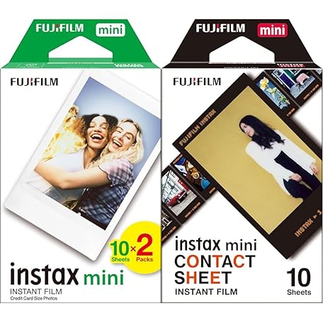 instax mini instant film White Border, 20 shot Pack, suitable for all mini cameras and printers & instax mini instant film Contact Sheet border, 10 shot pack
