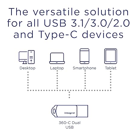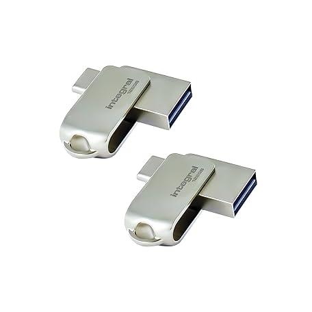 Thông tin sản phẩm Integral 2 Pack 128GB 360-Dual USB 3.2 Gen 1 Type C and Type A Flash Drive with Solid Metal Casing, Fast Transfer Speeds and Simply Plug and Play IPhone 15, 16 series, Macbook Pro/Air and Ipad Pro