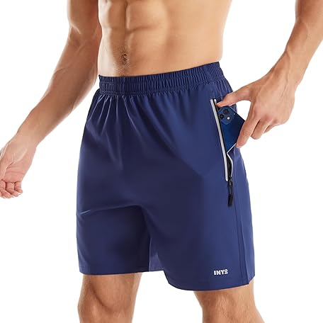 INYO Mens Tennis Shorts Quick Dry Lightweight Running Short Zipper Pockets Athletic Short Suitable for Sports Training Casual, Deep Blue, Large