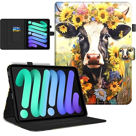 iPad Air 11-Inch Case (M3/M2), iPad Air 5th Gen/iPad air 4th Gen case 10.9 Inch, iPad Pro 11 Cases 4th/3rd/2nd/1st with Pencil Holder Magnetic Closure/Card Slots/Auto Wake Sleep, Sunflowers Cow