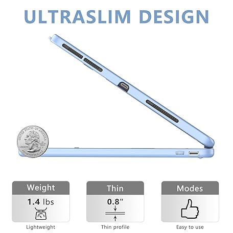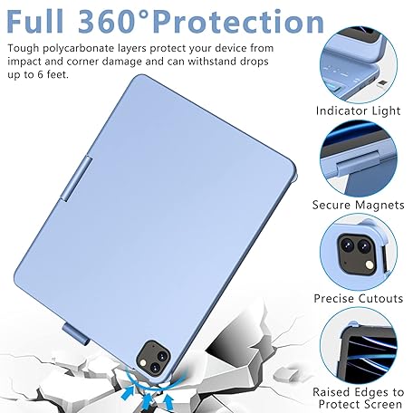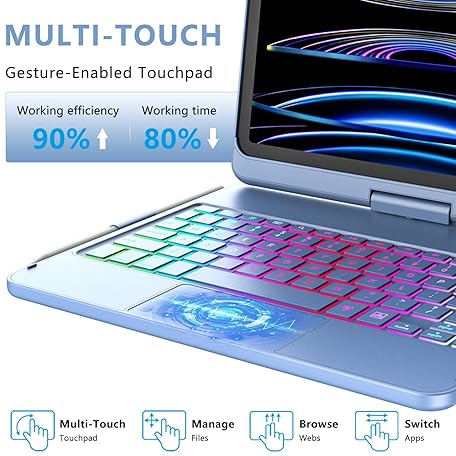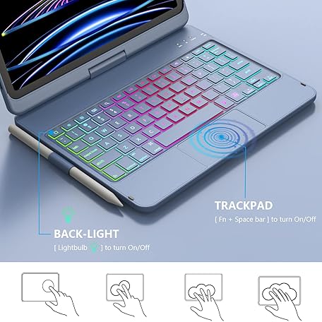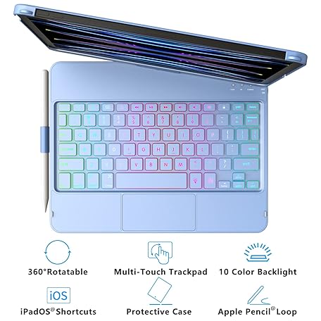 Thông tin sản phẩm iPad Pro 11 inch Case with Keyboard, iPad Air 5/Air 4 10.9 inch Keyboard Case with Trackpad, Keyboard Case for iPad Air 5/Air 4 and iPad Pro 1-4 Gen, Backlit 10 Color & 360 Screen Rotation -Ocean Blue