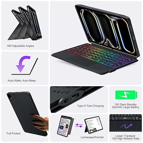 Thông tin sản phẩm iPad Pro 13 inch Case with Keyboard (M5 2025, M4 2024), Flex Magnetic Detachable Backlit Keyboard Case, Larger Multi-Trackpad, Landscape/Portrait, 160° Adjustable Stand, Slim Protective Case (Black)