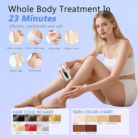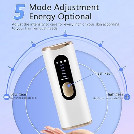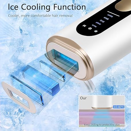Thông tin sản phẩm IPL Hair Removal Device, Painless Ice Cooling Efficient Laser Hair Remover for Women Men, Long Lasting Smoothness for Bikini Line, Face, Body, Armpits, Auto/Manual Flashing Mode, 5 Energy Levels