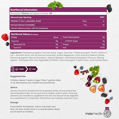 Thương hiệu maxmedix là cái tên nổi tiếng được rất nhiều khách hàng trên thế giới chọn lựa. Với kiểu dáng đẹp mắt, sang trọng, sản phẩm Iron & Vitamin C Gummies for Kids - 4 Months Supply - 120 Gummies - Natural Mixed Berry Flavour - Kids Iron for Energy & Immune System - Vegan Supplements - No Aftertaste là sự lựa chọn hoàn hảo nếu bạn đang tìm mua một món cho riêng mình.