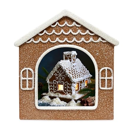 Thông tin sản phẩm Isaac Jacobs 4x4 Holiday‑Inspired Gingerbread House Picture Frame, Glitter Resin Picture Frame, Tabletop or Wall Display, Home Décor (Holds 4x4 Photos)