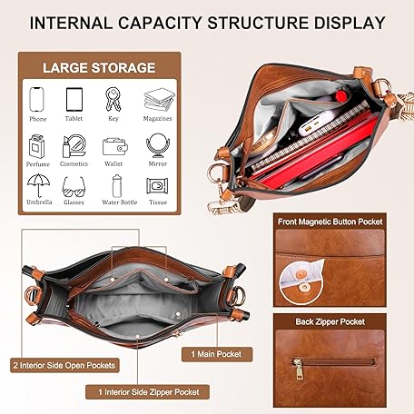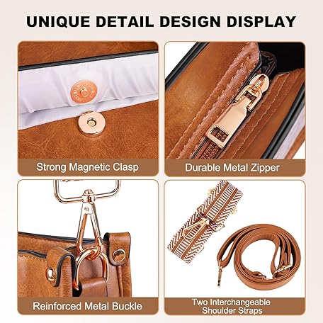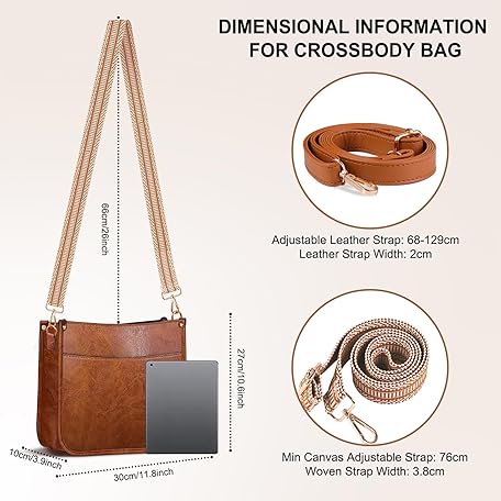 Thông tin sản phẩm ISEYOU Cross Body Bag for Women, Women's Cross-Body Bags with 2 Colored Adjustable Straps, Multiple Pockets, Vegan Leather Large Shoulder Bag with Zipper Closure