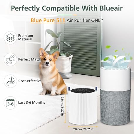 Thông tin sản phẩm isinlive 511 Filter Replacement Compatible with Blueair Blue Pure 511 Air Purifier, 2-in-1 True HEPA Filter System, 2 Pack, BP511