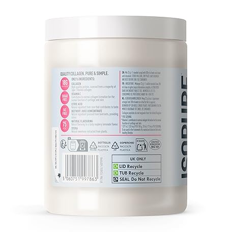 Sản phẩm Isopure Collagen Powder Raspberry Lemonade Flavour with Vitamin C for Skin & Joint Support – 20 g Collagen per Serve, Sugar-Free, No Artificial Flavours or Sweeteners – 345 g đang được bán với giá ưu đãi là $29.3973 tại nước Anh.