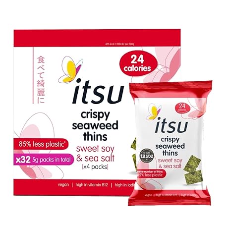 Sản phẩm itsu Sweet Soy & Sea Salt Flavour Seaweed Thins 5g | Crispy Seaweed Snacks | Vegan | Low Calorie | Healthy Snack | Pack of 32 đang được bán với giá ưu đãi là $32.6128 tại nước Anh.