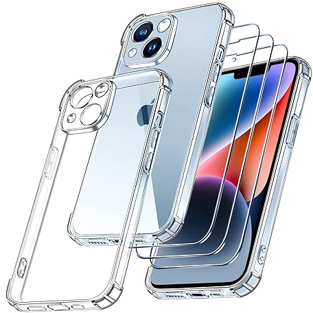 Sản phẩm ivoler [4 in 1 Camera Cover Case Compatible with iPhone 14 6.1" with 3 Pack Tempered Glass Screen Protector, Slim Soft TPU Shockproof Anti-Scratch Phone Case Cover - Clear đang được bán với giá ưu đãi là $8.5783 tại nước Anh.