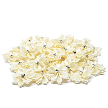 Sản phẩm Ivory 25mm Satin Ribbon Flowers with Rhinestone Diamante Centre, Craft Flowers (50) đang được bán với giá ưu đãi là $11.4559 tại nước Anh.