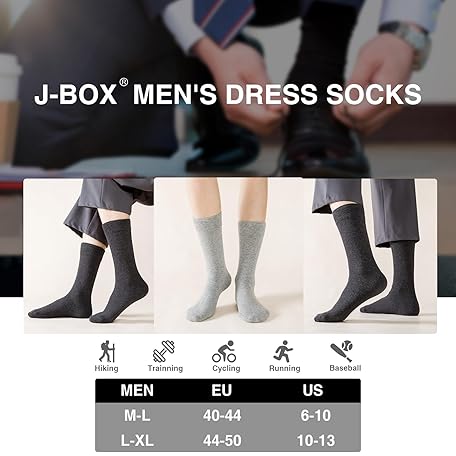 Thông tin sản phẩm J-BOX Men's Cotton Crew Socks-Wicking Black Dress Socks, Anti-Odor&Breathable for Business/Casual, Size 9-15