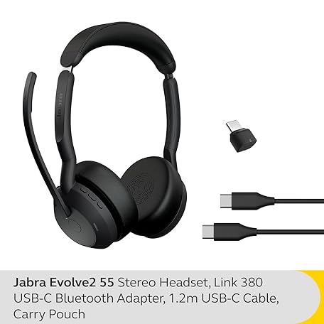 Thông tin sản phẩm Jabra Evolve2 55 Stereo Wireless Headset Air Comfort Technology, Noise-cancelling Mics, and Active Noise Cancellation - MS Teams Certified, Works with All Other Platforms - Black