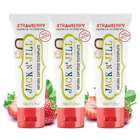 Jack N' Jill Natural Certified Toothpaste - Baby & Toddler Toothpaste, Fluoride-Free, 40% Xylitol, Sugar-Free, Safe for 6 Months and Up, Makes Tooth Brushing Fun, Organic Strawberry Flavour, 3 x 50g