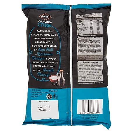 Sản phẩm JACOB'S Cracker Crisps Salt and Balsamic Sharing Bag, 150 g (Pack of 1) đang được bán với giá ưu đãi là $1.8966 tại nước Anh.