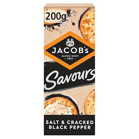 Sản phẩm JACOB'S Savours Bakes Salt and Cracked Black Peppers Crackers, 200 g (Pack of 1) đang được bán với giá ưu đãi là $1.8312 tại nước Anh.