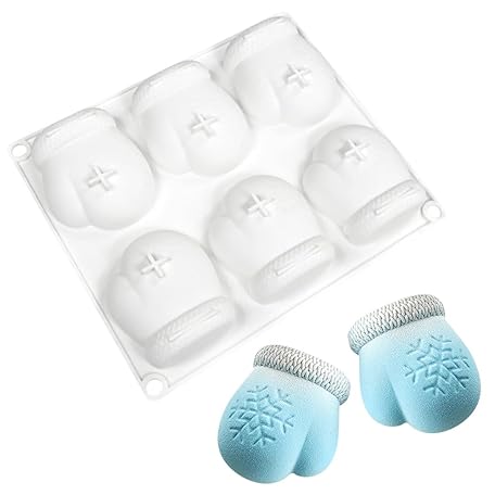 JAHEMU Snowflake Gloves Silicone Mold, Christmas 3D Silicone Molds, Reusable Baking Mold for Chocolate, Mousse, Ice, Gummies and Candles, Christmas and Winter Decoration