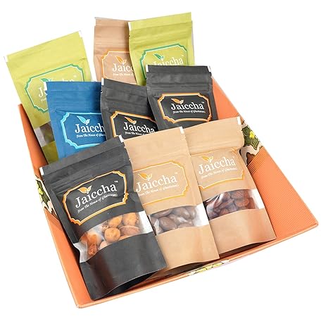 Jaiccha Ghasitaram Diwali Gifts - Diwali Gifts Big Basket of 9 Dryfruits Cashews, Almonds, Raisins, Pista, Papaya, Kiwi, Peri Almonds, Barbeque Cashews, Chocolate Almonds