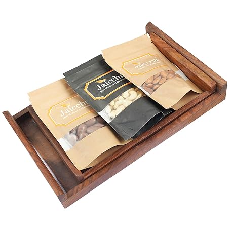 Jaiccha Ghasitaram Set of 2 Striped Wooden Trays Cashews,Almonds and Chocolate Coated Almonds |Diwali,Holi,Rakhi,Valentine,Christmas,Birthday,Anniversary,Gift for Her,Him,Mothers Day,Fathers Day|